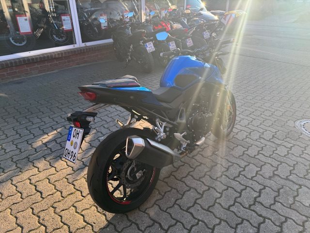 Verbautes Zubehör: Quickshifter, Komfort-Sitzbank, Sozius-Abdeckung, Lenkerenden, Lenkerbrücke, Felgenrand-Aufkleber, Sport-Fussrasten
