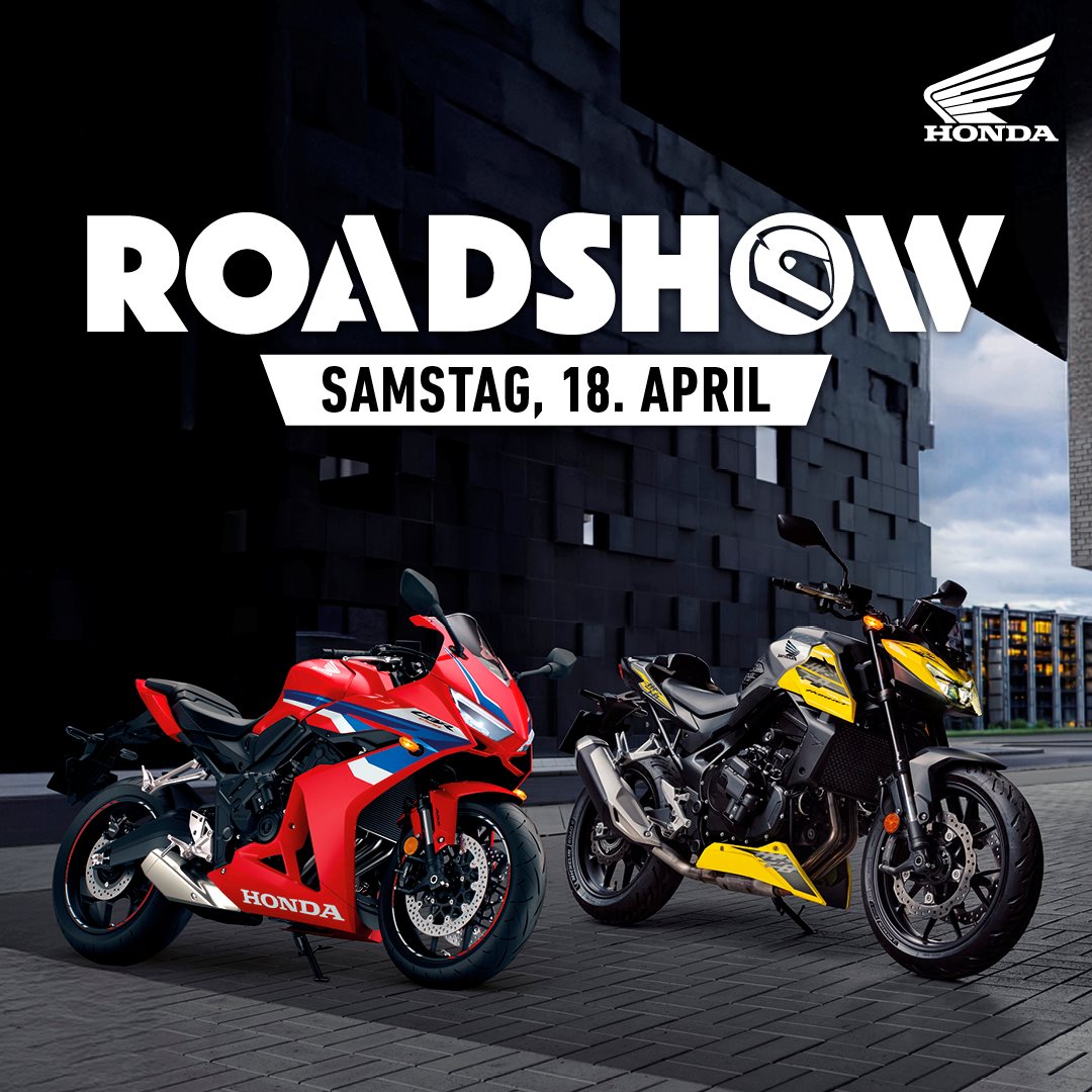 Die Honda Roadshow am 18. April ist das Highlight zum Saisonbeginn: 2026 steht ganz im Zeichen der Honda E-Clutch. Innovative Technologie, die sportliches Schalten neu definiert und das Fahrerlebnis noch direkter macht. Triff Gleichgesinnte, tausche dich über Bikes und Touren aus und genieße echtes Benzingeflüster in entspannter Event Atmosphäre. Komm vorbei, erlebe die Faszination Honda und feiere mit uns den Start in die neue Motorradsaison.