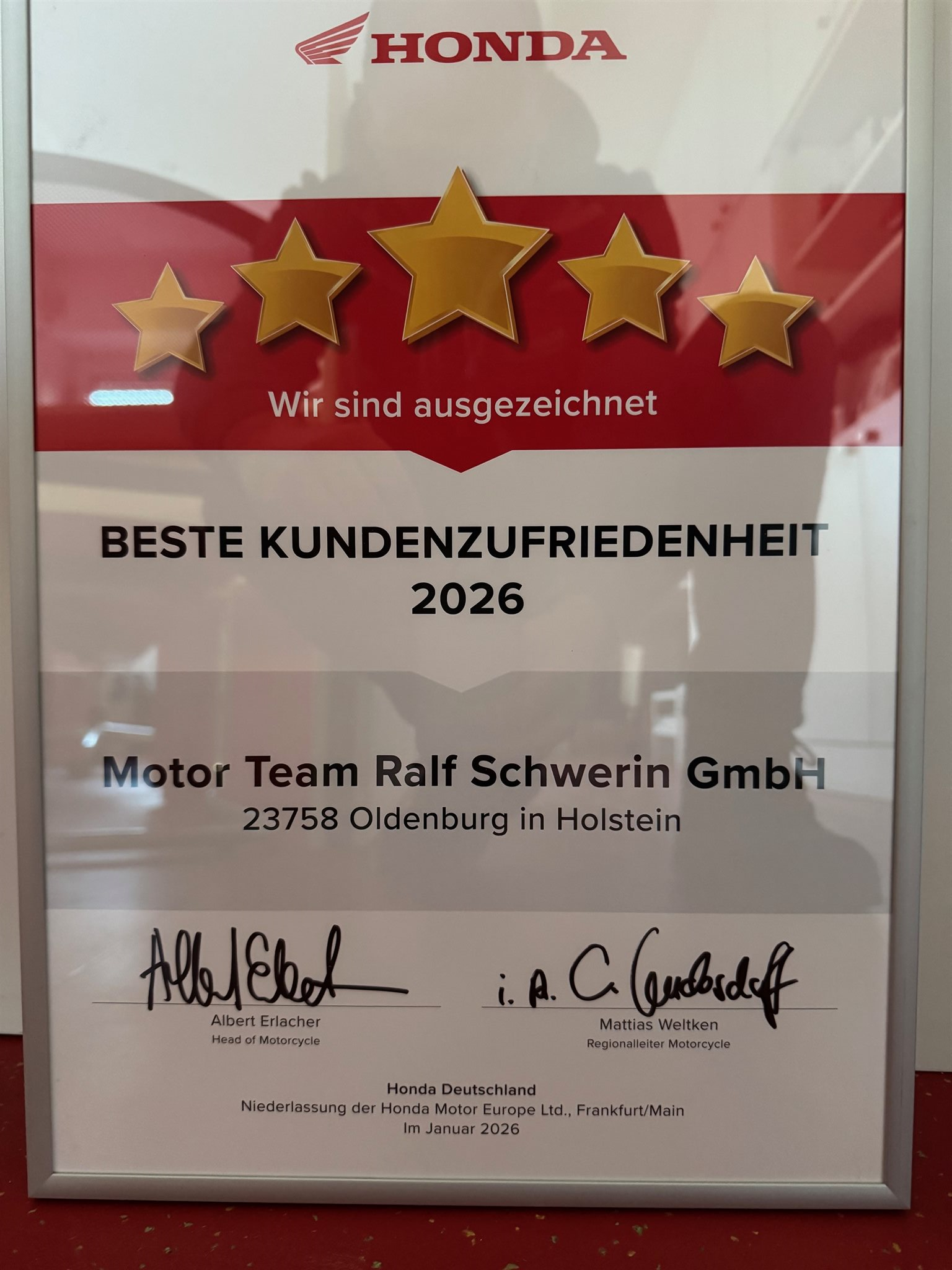 Für uns ist das Motorradfahren und die Marke Honda seit Jahrzehnten miteinander verbunden. Unsere Fahrzeuge, egal ob neu oder gebraucht, verlassen unser Haus nur, wenn unser Werkstattteam das „ok“ dazu gegeben hat. Denn wir glauben, daß ein Motorrad etwas ist, dem man vertrauen sollte.